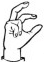 На ћирилици написано ЗОРАН УЛЕМЕК састоји се из 11 слова [?]. Исписано ћириличном једноручном азбуком за глувонеме: